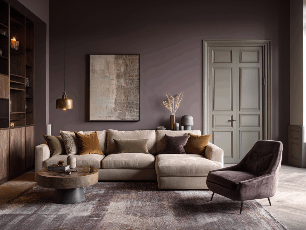 Za vse, ki si želite nekoliko več izraznosti, v JUB-u izpostavljamo Mystic Plum, našo barvo leta 2026. Ta sivo-rjavo vijoličast odtenek združuje toplino in globino ter prostoru doda prefinjen značaj. Mystic Plum se čudovito povezuje z temnim lesom, naravnim kamnom in matiranimi kovinskimi detajli v odtenkih brona ali medenine. Za zimski ambient priporočamo, da ga kombinirate z mehkim bež ali karamelnim odtenkom, ki prostoru doda svetlobo in toplino ter poudari globino vijoličaste. Mystic Plum lahko uporabite kot poudarjeno stensko barvo ali v kombinaciji z mehkim tekstilom, kot so žametne zavese ali oblazinjeno pohištvo, za ustvarjanje elegantnega in hkrati zelo prijetnega, toplega zimskega ambienta.